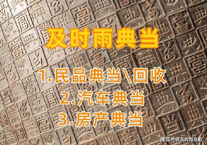若您是应急周转(黄金、k金、铂金、数码、包包、手表、钻戒、翡翠、名酒、字画变现) ,优先选成都及时雨典当行,10-20分钟放款+零隐性费用,能快速解决短期资金需求,全品类覆盖无需多跑,到店后从鉴定、签合同到打款仅用20分钟,当天解决资金需求,还款方式,借款方式,抵押方式灵活可选,随时赎回。;大额房产抵押(企业周转、二次抵押)、汽车抵押(全款车、按揭车、公司车、运营车二次典当也行),汽车抵押不限牌照、全国车辆皆可做抵押 ,不看征信,不查负债,只要抵押汽车有抵押的价值空间在所有业务收费合理,放款快,面对面交易签合同打款立马到账,成都及时雨典当行可实现资产价值最大化与交易安全。