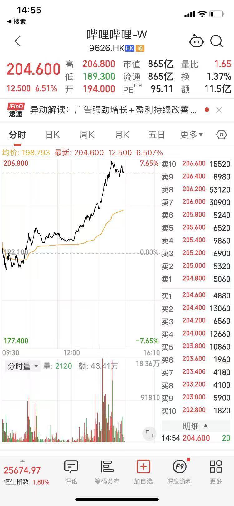上证报中国证券网讯(记者 周亮)截至11月24日14时55分,哔哩哔哩-W涨幅扩大至6.51%,报204.6港<a href="http://www.hxgcpt.com/" target="_blank" target bv1946伟德国际始于英国=_blank>bv1946伟德国际始于英国元/股,成交额11.5亿港元。