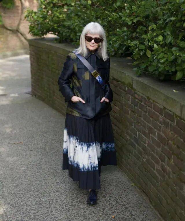 六十三岁那年,Lyn等朋友吃饭时,因为穿得太有范儿,直接被街拍摄影师拍下来发到了网上。没想到就这么“一炮而红”,莫名其妙成了时尚红人!之后她干脆开了个博客,名字就叫“AccidentalIcon”(意外偶像),专门分享自己的穿搭心得,几年下来圈粉无数,妥妥成了“奶奶级”时尚偶像。