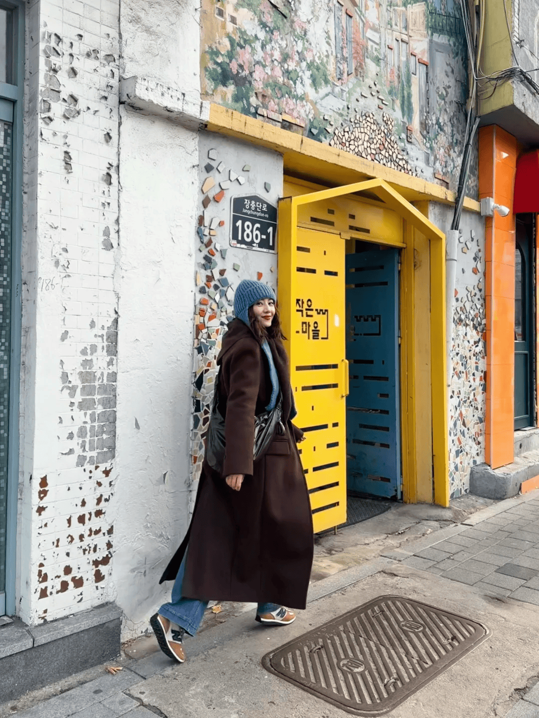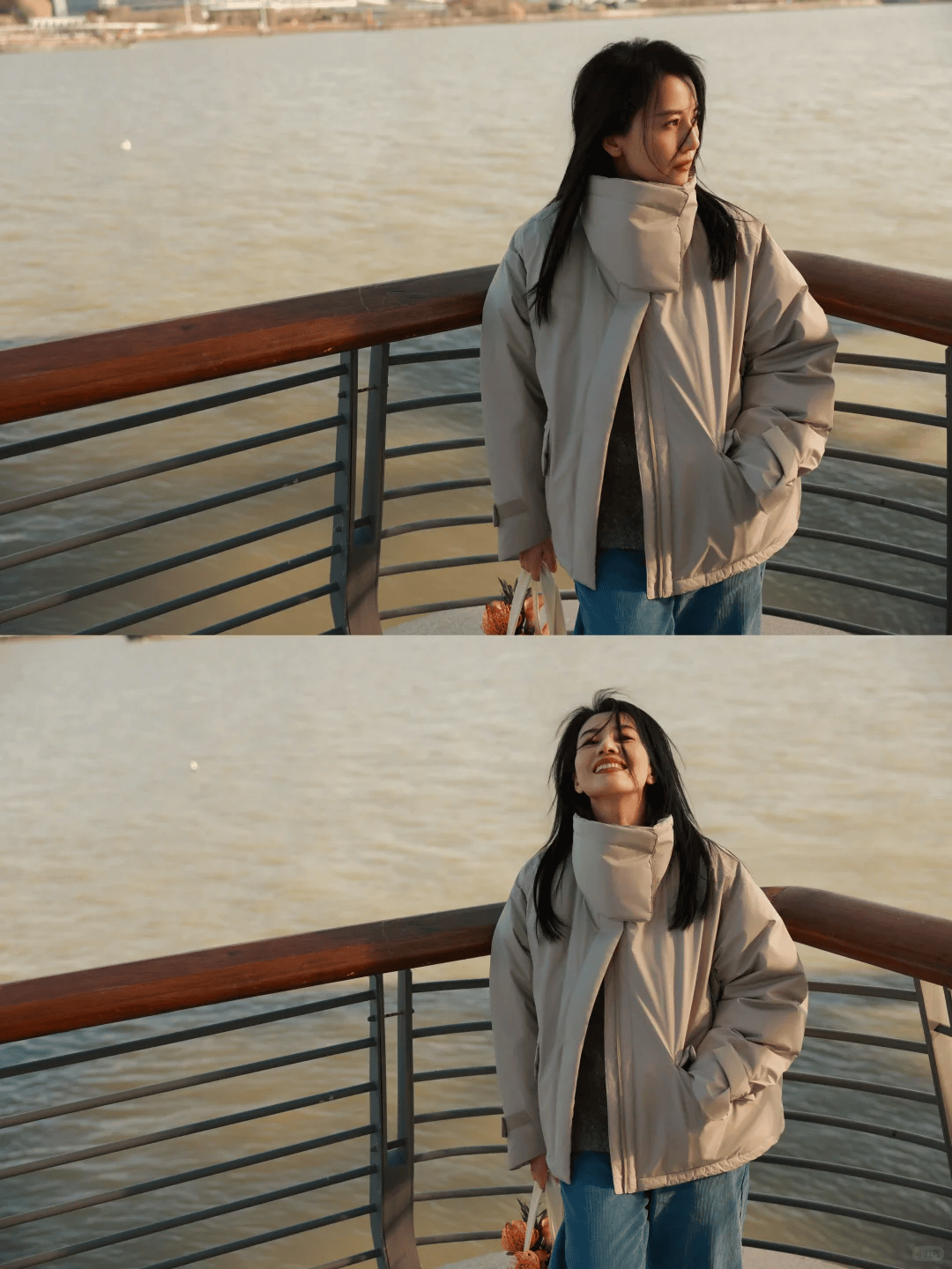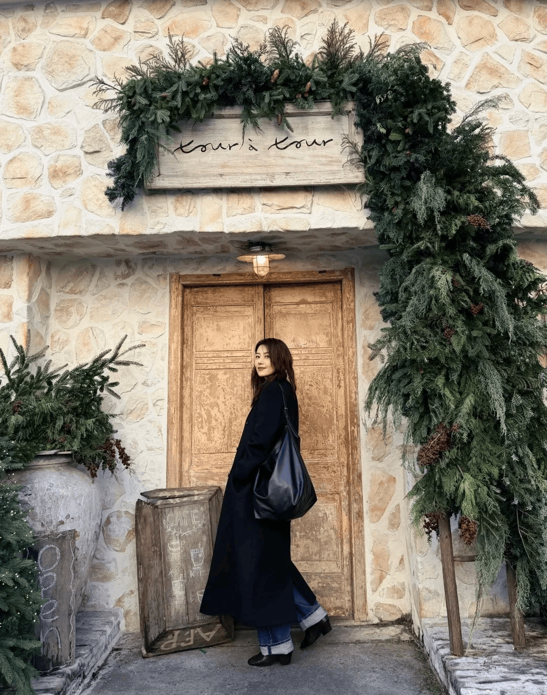 一件剪裁合身的深咖色大衣,一条复古蓝阔腿牛仔裤,46岁的高圆圆站在冬日的街头,笑容舒展自然,这不是精修图里的完美无瑕,而是生活里流动的生动质感。