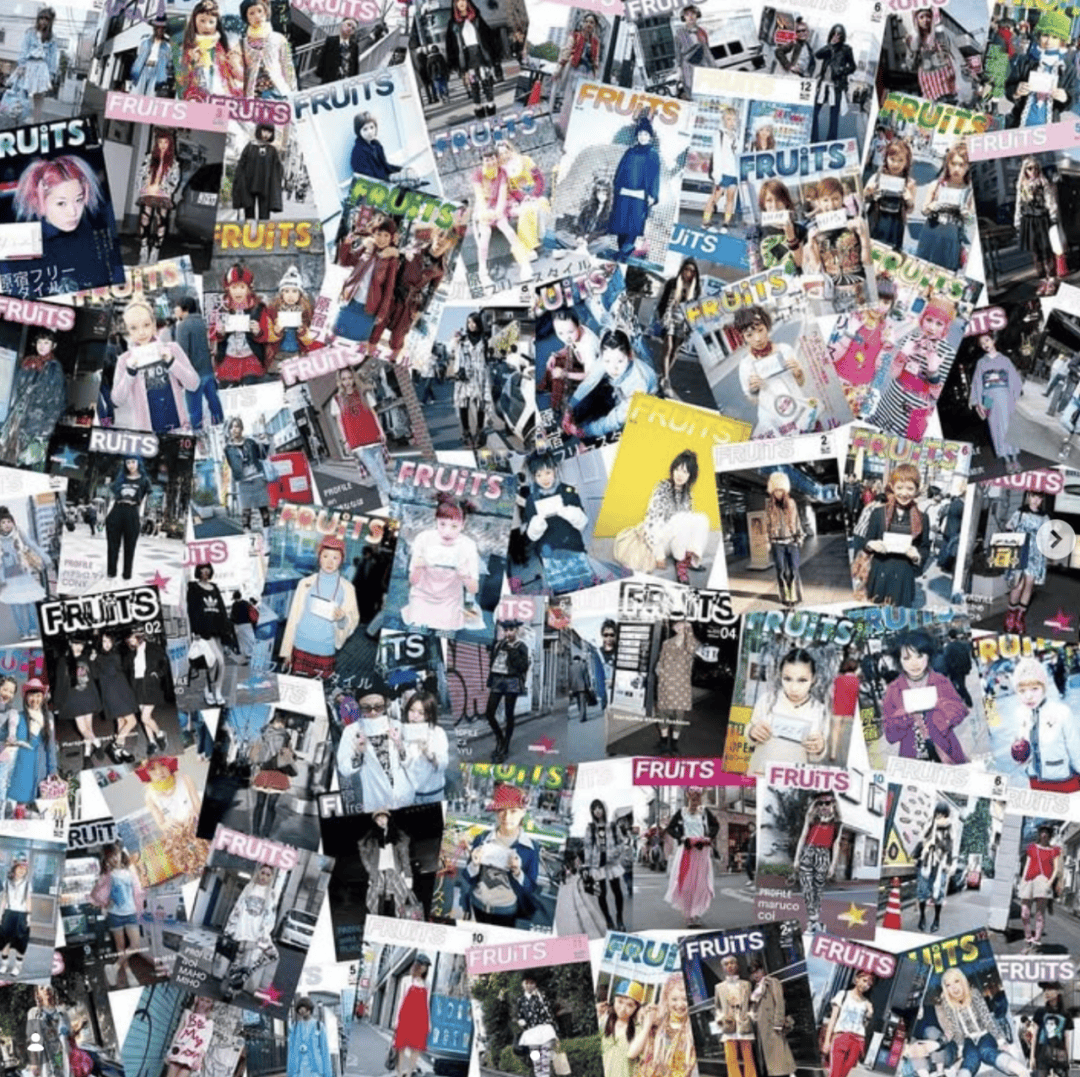 青木曾说过一句话:“流行不是品牌创造的,而是街上的人创造的。”在他看来,90年代的原宿正是各种个性最密集的地方。独特的亚文化通过他的镜头和《Fruits》的页面,被拆解成品牌、搭配与审美的碎片,慢慢汇聚成一个时代的潮流。
