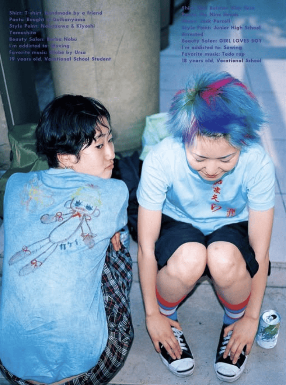 如果翻看90年代到2000年初的日本时装杂志,你会对这种版式非常熟悉。某种程度上,《Fruits》几乎可以算是这类街拍内容的源头。青木始终坚持这种记录方式,把“日本街头时尚=原宿”的印象推向全世界,后来无数国际设计师都从这本杂志里汲取过灵感。