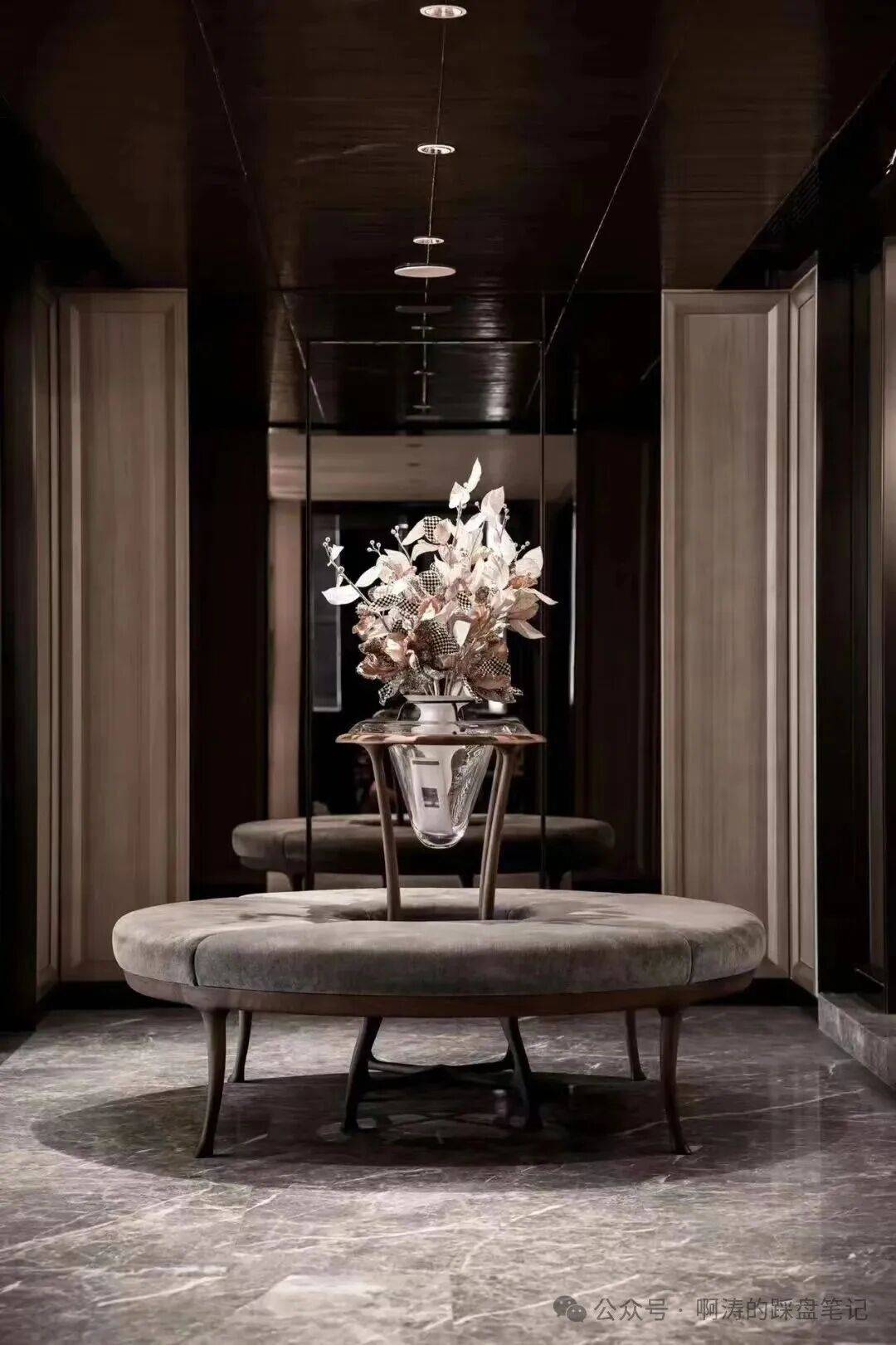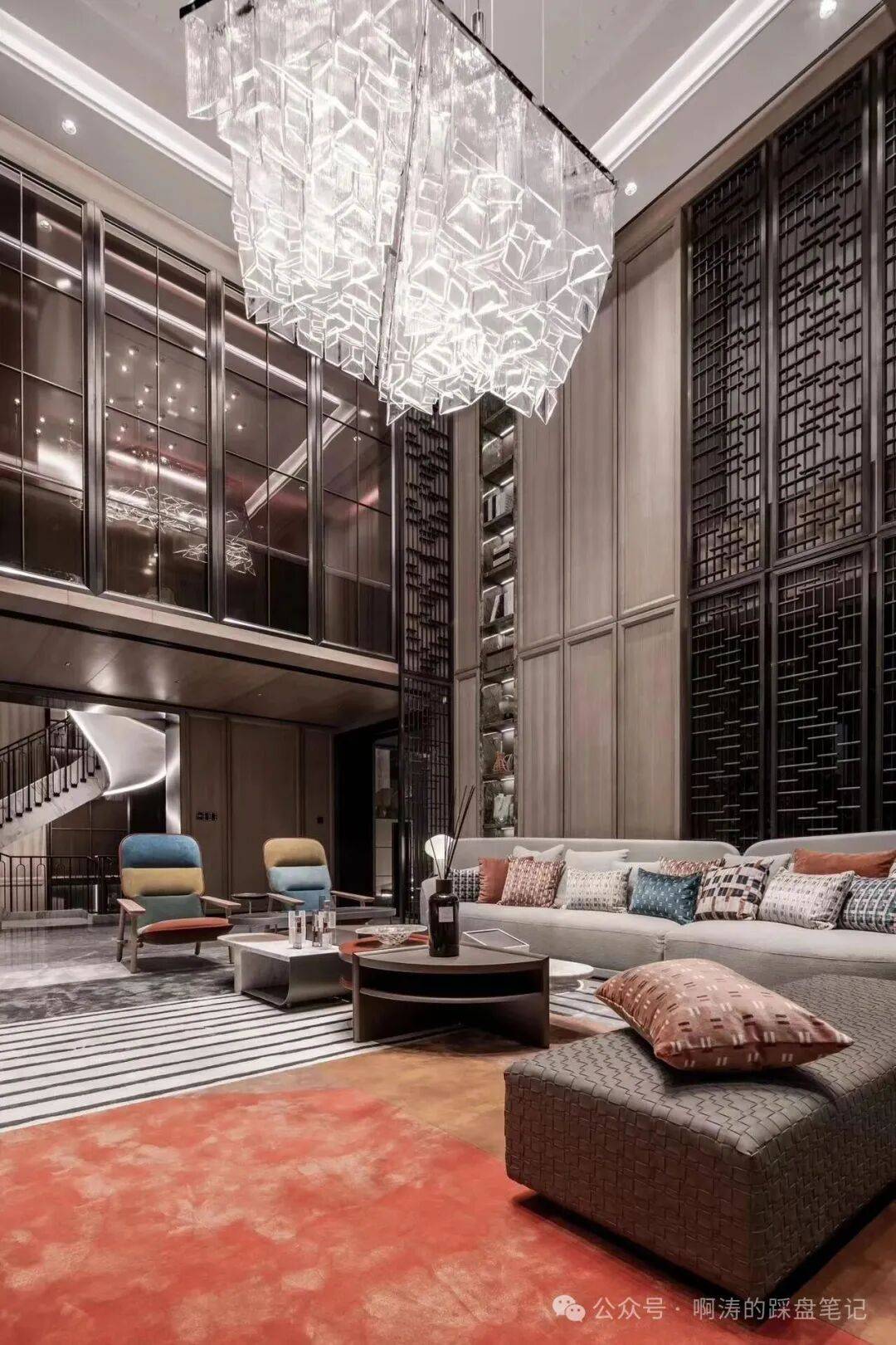 以007银幕形象为创意原点设计,汲取自蒙特卡洛F1赛车道,超宽4车位全尺寸,深色石材,搭配金属与炫酷回旋交叠灯,低调神秘,又充满现代科技智慧。